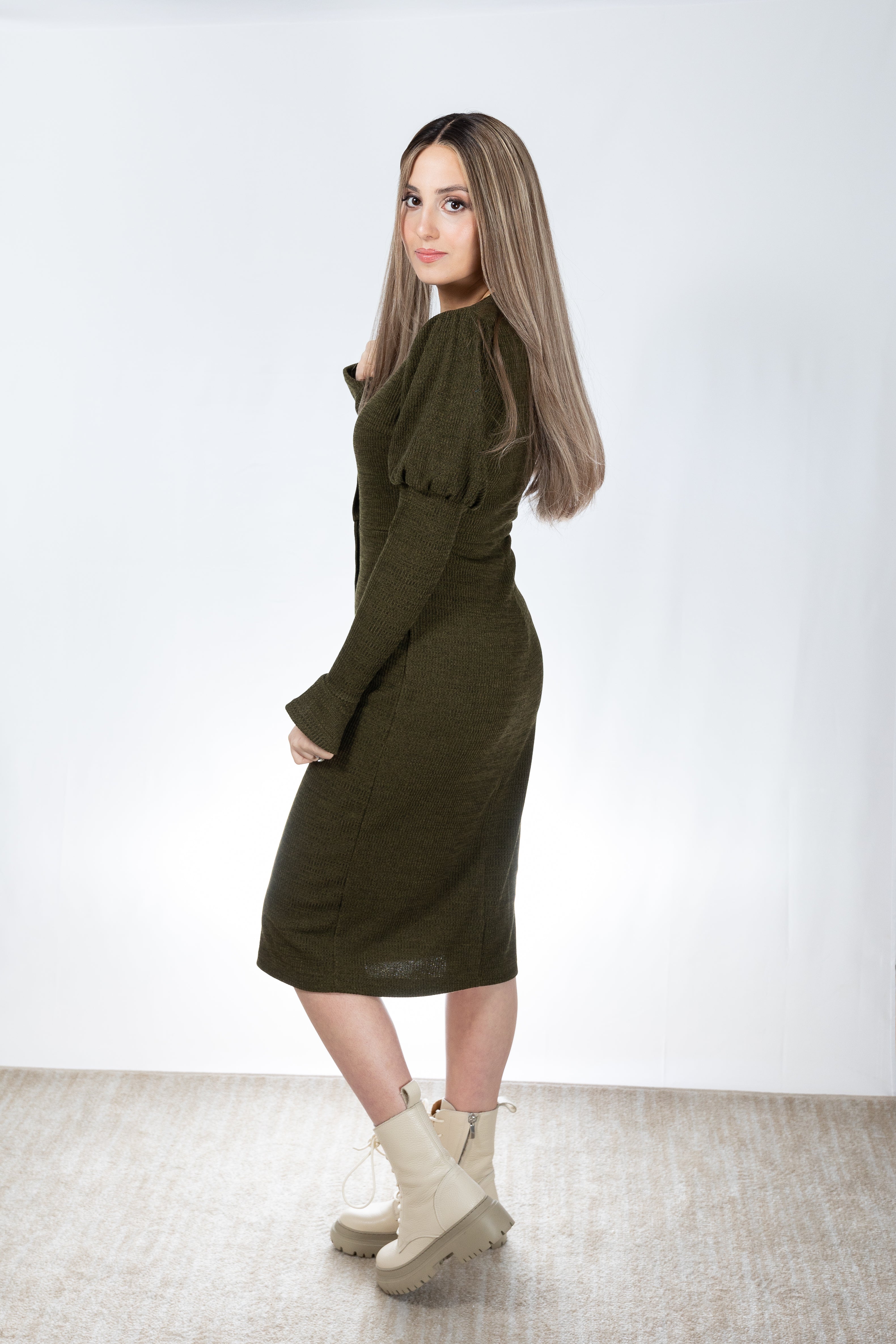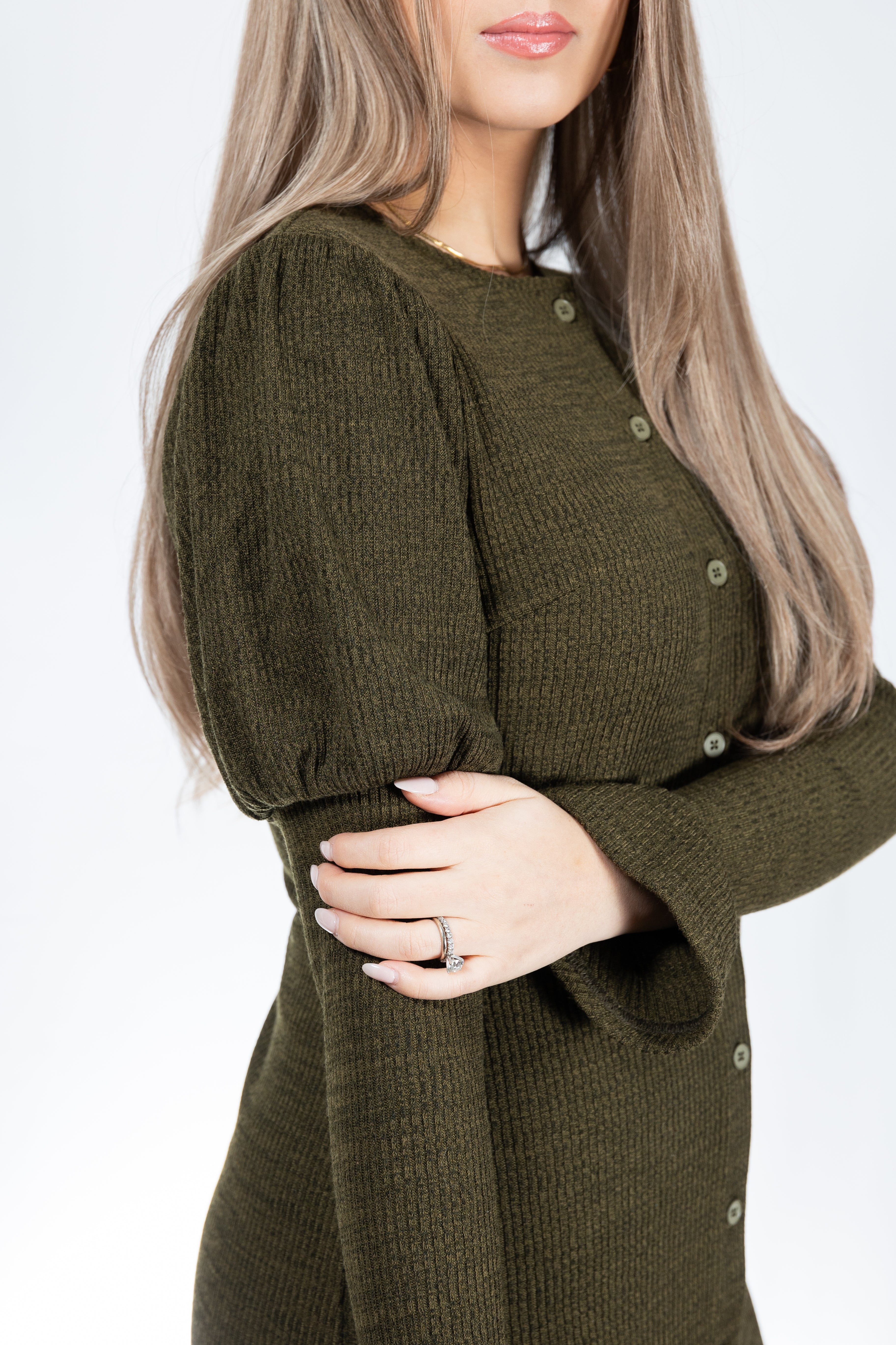 A super comfortable ribbed dress , with a magnificent sleeve detaling , perfect to throw on and feel dressed with no effort. Great for maternity as well. And of course - nursing friendly!