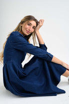 A dreamy , slightly stretchy , pleated , perfectly flattering denim dress , with a hidden zipper that opens from the top until passed the waist. - perfect for nursing!